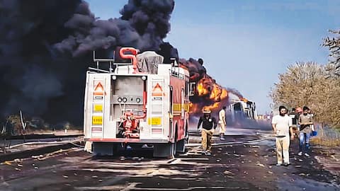 असम के कोकराझार में राष्ट्रीय राजमार्ग पर एक तेल टैंकर पलटा, लगी भीषण आग