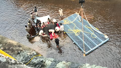 कर्नाटक में पावर प्लांट की 60 फीट गहरी नहर में गिरा हाथी, जानिए कैसे निकाला गया