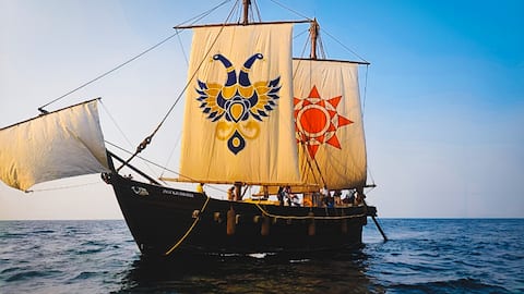 INSV Kaundinya is a recreation of a 5th century Indian ship using the ancient stitching technique. The ship departed from Gujarat's Porbandar on 29th December 2025 pic.twitter.com/xc3NtGdg6U