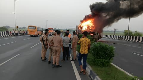 उत्तर प्रदेश के अलीगढ़ में कार और ट्रक की टक्कर, कार सवार 5 लोग जिंदा जले