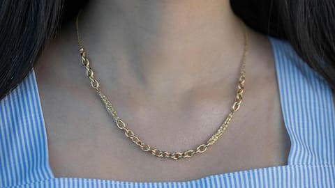 स्टेटमेंट चेन आपके किसी भी कपड़े को तुरंत ही खास बना सकती है। इसे आप सिंपल कुर्ता या टी-शर्ट के साथ पहन सकती हैं और यह आपके लुक में चार चांद लगा देगी। स्टेटमेंट चेन का चुनाव करते समय उसकी मोटाई और डिजाइन पर ध्यान दें ताकि वह आपके व्यक्तित्व को सही तरीके से दर्शा सके। आप अलग-अलग रंगों और आकारों की स्टेटमेंट चेन चुन सकती हैं, जो आपके स्टाइल को और भी आकर्षक बनाएगी।