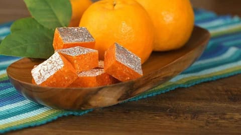 सबसे पहले एक पैन में चीनी और पानी डालकर इसे गाढ़ा होने तक पकाएं। अब इसमें संतरे का रस मिलाएं और इसे 5 मिनट तक पकाएं, फिर इसमें कदूकस किया हुआ नारियल और इलायची का पाउडर मिलाकर इसे अच्छी तरह मिलाएं। इसके बाद इस मिश्रण को घी लगे थाली में डालकर ठंडा होने दें और जब यह ठंडा हो जाए तो इसे टुकड़ों में काटकर परोसें। संतरे की बर्फी का खट्टा-मीठा स्वाद सबको पसंद आएगा।