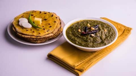 सबसे पहले मक्की के आटे में थोड़ा-सा नमक मिलाकर पानी डालें और गूंध लें। अब आटे की लोई बनाकर बेल लें और तवे पर सेंक लें। दूसरी तरफ सरसों की पत्तियों, पालक, हरी मिर्च, लहसुन आदि को मिलाकर पीस लें। कढ़ाई में तेल गर्म करके उसमें जीरा डालें, फिर प्याज भूनें। अब पीसा हुआ मिश्रण डालकर पकाएं। अंत में इसमें मक्खन डालें और गर्मागर्म परोसें।