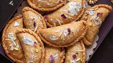 गुजिया होली का एक पारंपरिक व्यंजन है। इसे बनाने के लिए सबसे पहले एक बड़ा चम्मच मैदा लें और इसमें थोड़ा-सा घी मिलाएं। अब इस मिश्रण में पानी डालकर सख्त आटा गूंथ लें। इसके बाद एक पैन में खोया, चीनी, सूखा नारियल, काजू, किशमिश, इलायची पाउडर और केसर को मिलाकर सूखा भरवा बना लें। फिर आटे से छोटी-छोटी पूरियां बना लें और इनमें सूखे भरवे को भरकर इन्हें तल लें। इसके बाद गुजियाओं को ठंडा करके परोसें।