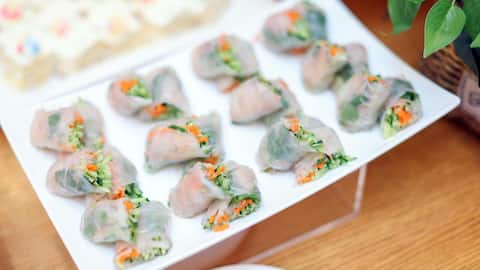 स्प्रिंग रोल्स तो आपने कई बार खाए होंगे, लेकिन क्या आपने कभी राइस पेपर से स्प्रिंग रोल्स बनाए हैं? इसके लिए सबसे पहले सब्जियों (गाजर, पत्ता गोभी, शिमला मिर्च आदि) को बारीक काटकर हल्का सा भून लें। फिर राइस पेपर पर इनको रोल करें। रोल्स को गर्म तेल में सुनहरा होने तक तलें। यह रोल बाहर से कुरकुरा और अंदर से स्वादिष्ट होते हैं, जो आपके खाने का मजा बढ़ा देंगे।