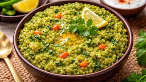 सबसे पहले एक प्रेशर कुकर में थोड़ा तेल गर्म करके उसमें जीरा और हींग डालकर भूनें, फिर इसमें बारीक कटा प्याज, बारीक कटा टमाटर, अदरक-लहसुन का पेस्ट और बारीक कटी हरी मिर्च मिलाएं। अब इसमें हल्दी पाउडर, लाल मिर्च पाउडर, नमक, गरम मसाला और थोड़ा पानी मिलाकर मिश्रण को 1 मिनट तक पकाएं। इसके बाद इसमें धोकर भिगोई हुई मूंग दाल, चावल, कद्दूकस किया हुआ पालक और चना मटर डालकर 2 सीटी आने तक पकाएं।