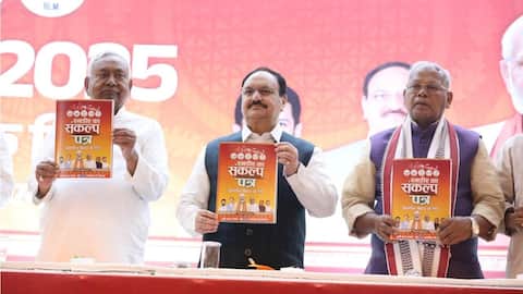 पटना के मौर्या होटल में NDA का घोषणापत्र जारी करने के बाद नीतीश कुमार, जेपी नड्डा, धर्मेंद्र प्रधान समेत अन्य सहयोगी दलों के नेता वापस चले गए। इसके बाद उपमुख्यमंत्री सम्राट चौधरी ने अकेले ही मंच से घोषणापत्र के वादे पढ़े थे।