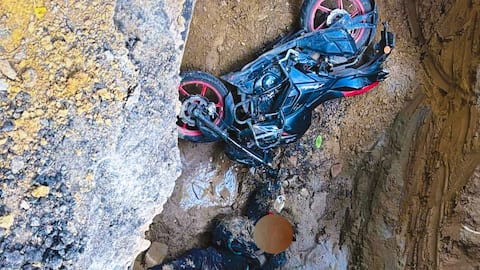 सड़क में गहरे गड्ढे में एक मासूम बाइक सवार गिर कर फँस गया, रात भर पड़ा रहा और मर गया
