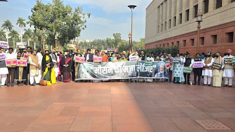 दिल्ली समेत उत्तर भारत के राज्यों में वायु प्रदूषण की बिगड़ती स्थिति को लेकर गुरुवार को विपक्षी सांसदों ने संसद परिसर में प्रदर्शन किया। कांग्रेस अध्यक्ष मल्लिकार्जुन खड़गे, कांग्रेस संसदीय दल की अध्यक्ष सोनिया गांधी समेत कई सांसद ऑक्सीजन मास्क लगाकर केंद्र सरकार के खिलाफ नारेबाजी कर रहे थे। वे एक बैनर लिए हुए थे, जिसमें प्रदूषण के बीच प्रधानमंत्री नरेंद्र मोदी की तस्वीर के साथ लिखा था, "मौसम का मजा लीजिए।"