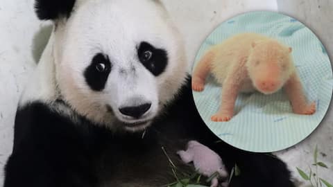 विशाल पांडा दुर्लभ जानवर हैं, जंगल में जिनकी संख्या 1,900 से भी कम बची है। इनके लुप्त होने के संकट के बीच अब एक खुशखबरी मिली है। दरअसल, इंडोनेशिया में पहले विशाल पांडा की किलकारी गूंजी हैं, जिसका नाम प्यार से 'रियो' रखा गया है। इस पांडा की प्यारी तस्वीरें सोशल मीडिया पर तेजी से वायरल हो रही हैं और सभी को भावुक होने पर मजबूर कर रही हैं। शावक के जन्म से मां भी बेहद खुश है।