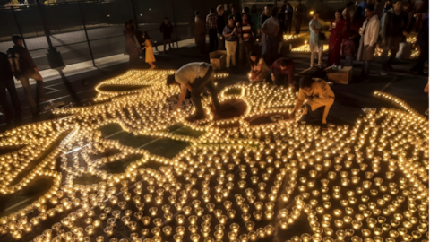 #WATCH | United States: BAPS Swaminarayan Akshardham Temple in Robbinsville, New Jersey displays its iconic fireworks on the occasion of #Diwali pic.twitter.com/sriKKvaE3C